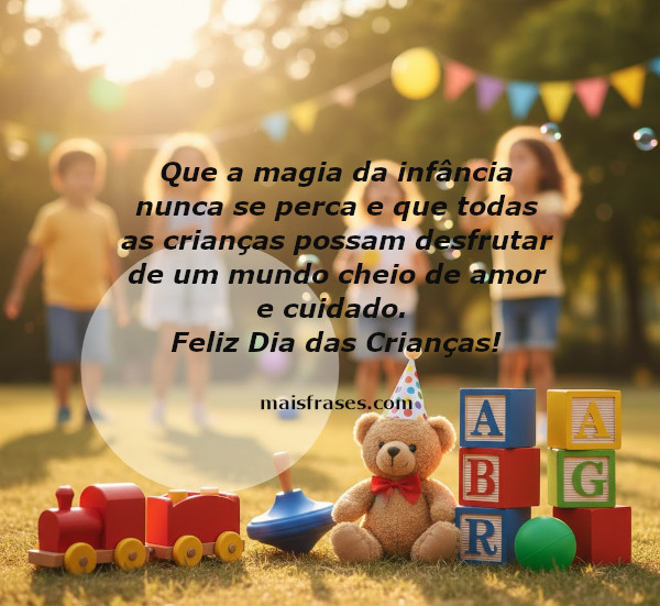 ![]() | Que a magia da infância nunca se perca e que todas as crianças possam desfrutar de um mundo cheio de amor e cuidado. |
